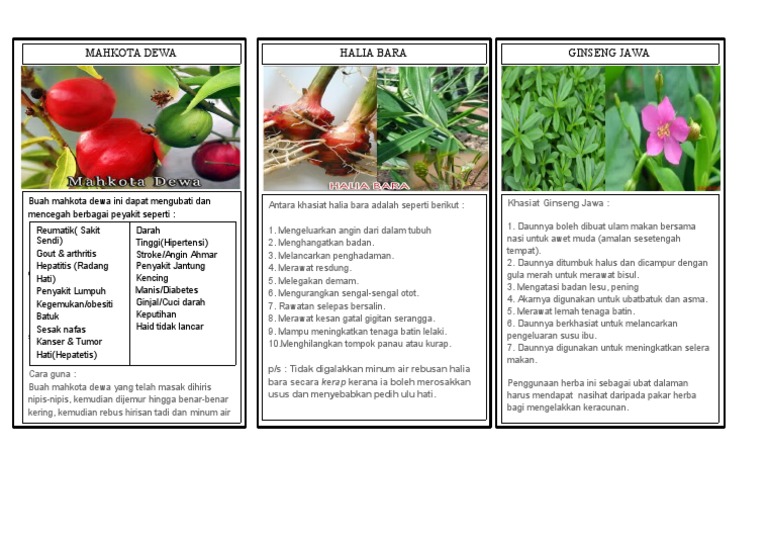 Namun begitu, untuk membuktikan petua ini disokong oleh perubatan oleh itu, sekiranya anda ingin mengamalkan mahkota dewa untuk merawat penyakit, anda disarankan berbincang dengan doktor yang merawat. Hal ini dikarenakan buah ini memiliki banyak kandungan nutrisi alami yang sangat berkhasiat seperti vitamin, alkaloid, saponin, dan polifenol. Mahkota dewa mampu menurunkan kadar kolesterol jahat. Mahkota dewa yang kaya antioksidan juga mampu untuk menurunkan risiko penyakit kardiovaskular seperti jantung koroner, stroke, dan penyakit lainnya. Mahkota dewa juga bisa digunakan sebagai obat herbal untuk meningkatkan sistem metabolisme tubuh sehingga mampu membuat tubuh menjadi lebih bugar dan fit. Belum diketahui dosis efektif yang aman dan. Penggunaan mahkota dewa sebagai obat herbal sudah sangat populer di berbagai daerah di indonesia. Karena buah ini dikenal sebagai buah beracun yang bisa mematikan bagi para pemakannya jika kita. Manfaat minyak zaitun untuk kecantikan wajah. Banyak orang yang sering mendengar kata mahkota dewa, namun tidak banyak orang yang pernah melihat bentuk serta wujud dari tumbuhan. Buahnya berkhasiat menghilangkan gatal (antipruritus) dan 3. Pada masa lampau hanya masyarakat indonesia sahaja yang mengetahui khasiat mahkota dewa. Khasiat mahkota dewa sebagai tanaman herbal memang sudah terbukti dan dipercaya oleh banyak orang.